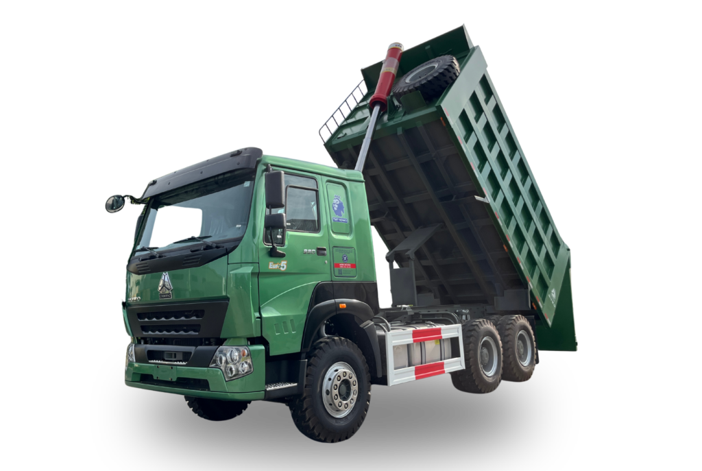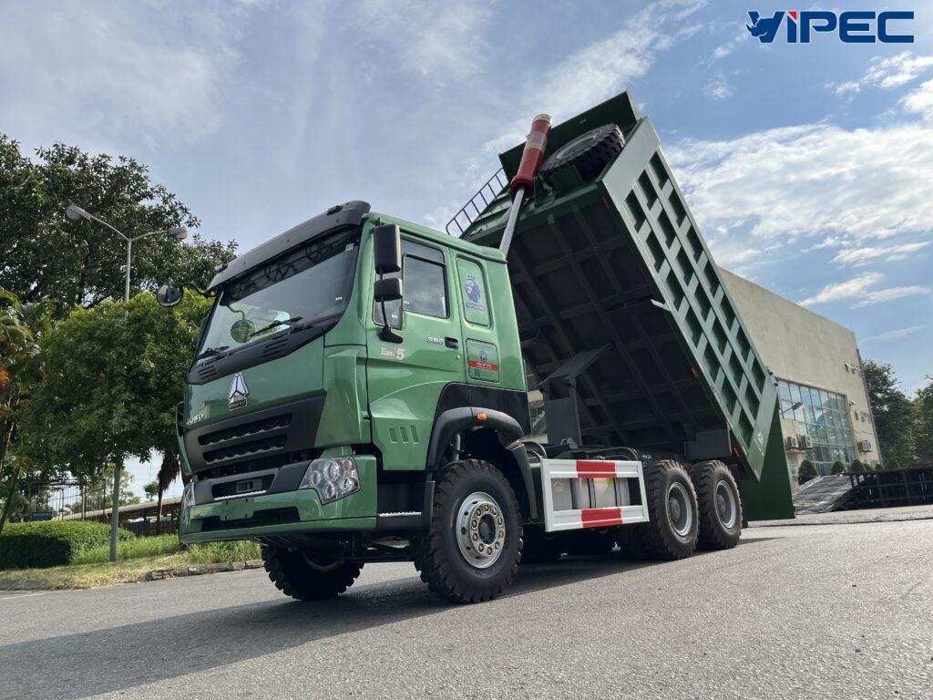 The Howo 3-axle (6×4) dump truck is powered by the D10.38-50 diesel engine, a 4-stroke, 6-cylinder in-line, water-cooled turbocharged unit. With a displacement of 9,726 cc, it delivers a maximum output of 380 HP, providing robust and powerful performance for navigating complex mountainous terrain. The engine meets Euro 5 emission standards, ensuring environmental friendliness and full compliance with the Vietnam Register’s motor vehicle emission regulations.