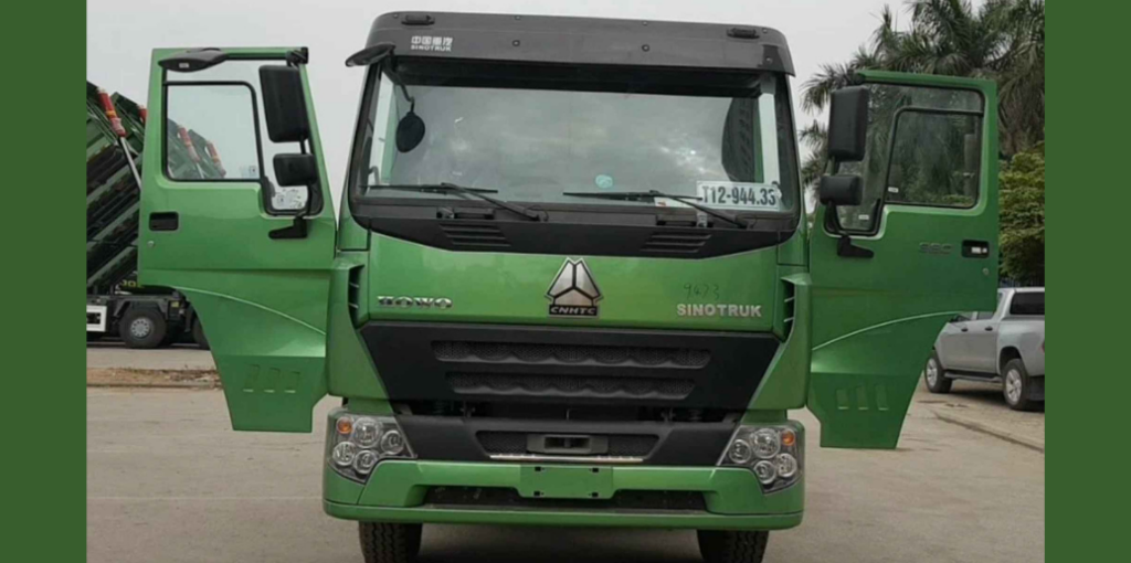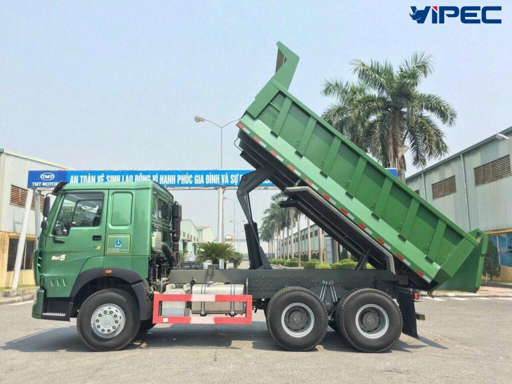 The Howo 3-axle dump truck with cast body uses a D10.38-50 diesel engine, 4-stroke, 6-cylinder in-line, turbocharged, water-cooled, with a displacement of 9,726 cm3 for a maximum power of 380 HP. The engine meets Euro 5 emission standards, is environmentally friendly, and fully complies with Vietnam’s motor vehicle emission regulations.