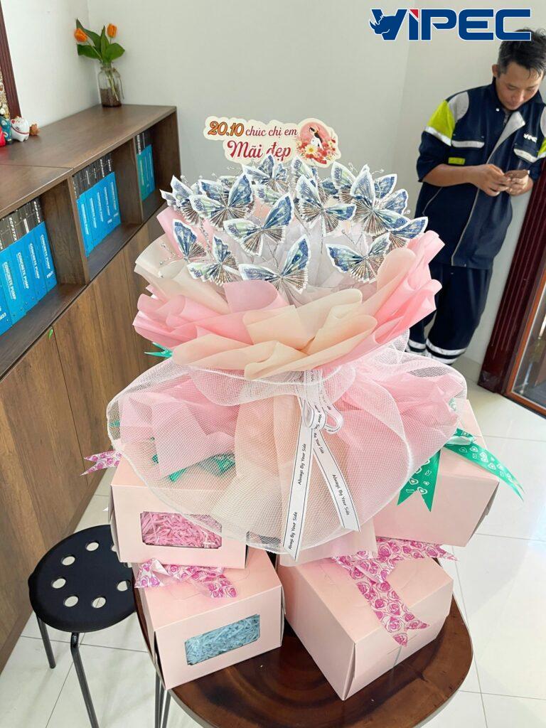 Từ sáng sớm, những phần quà nhỏ xinh cùng bó hoa được chuẩn bị cẩn thận, được các “quý ông VIPEC” tự tay gói ghém và gửi tặng từng chị em. Không chỉ là những món quà, mà còn là sự quan tâm, là niềm vui được gửi gắm trong từng lời chúc, từng nụ cười rạng rỡ.