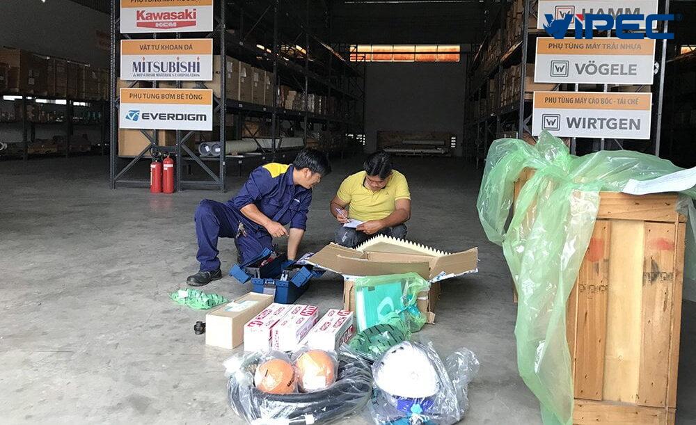 Đại diện công ty Tân Ngọc Lực nhận bàn giao phụ tùng xe bơm Everdigm tại kho của VIPEC
