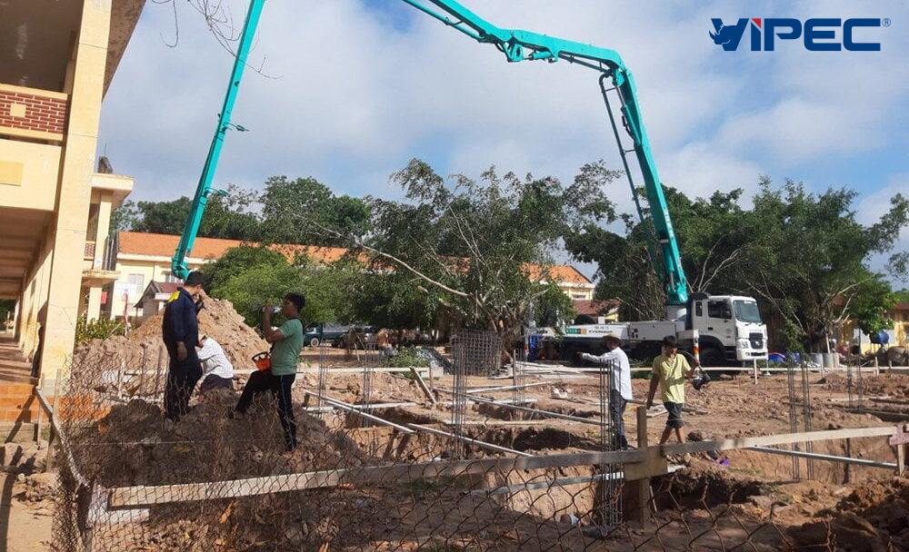 Xe bơm bê tông Everdigm 38ZX làm việc tại công trường