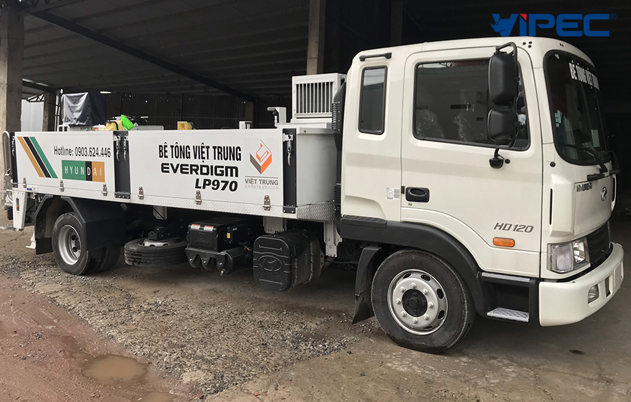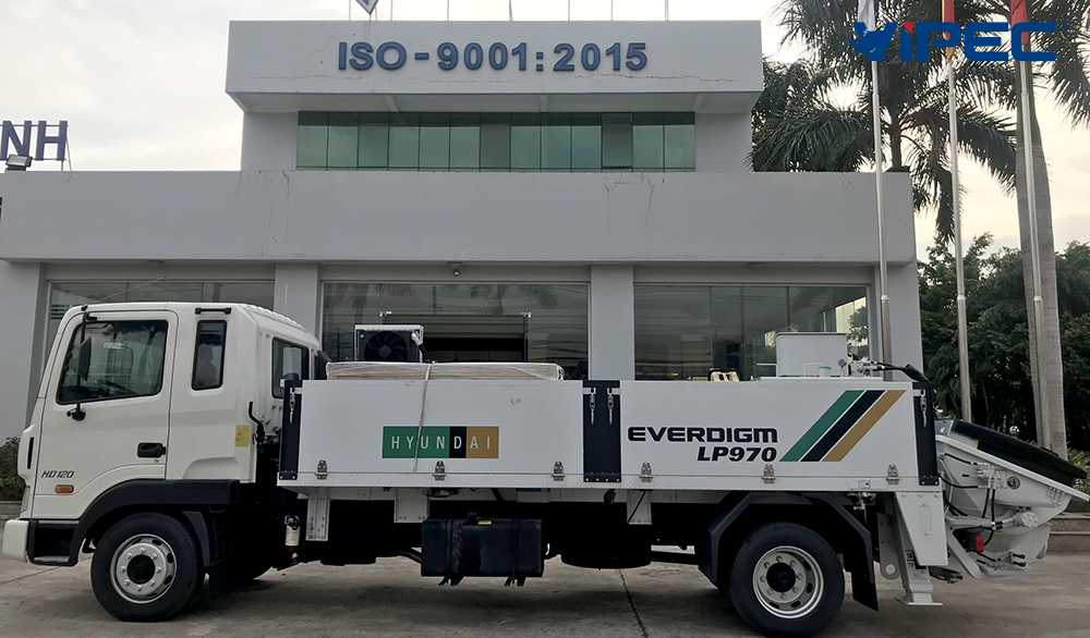 – 01 xe bơm bê tông tự hành Hyundai Everdigm LP970, công suất bơm đạt >100m3/h, áp suất đẩy bê tông là 153 bar