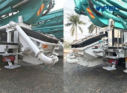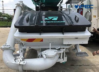 Phễu tiếp liệu thiết kế mới, chống kén – nghẹt bê tông. Hai mô tơ cánh khuấy thuỷ lực 2 bên