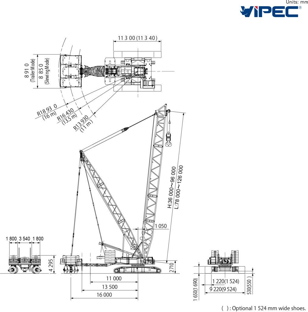 | Tải trọng nâng tối đa × Bán kính | 250 t × 18.0 m |