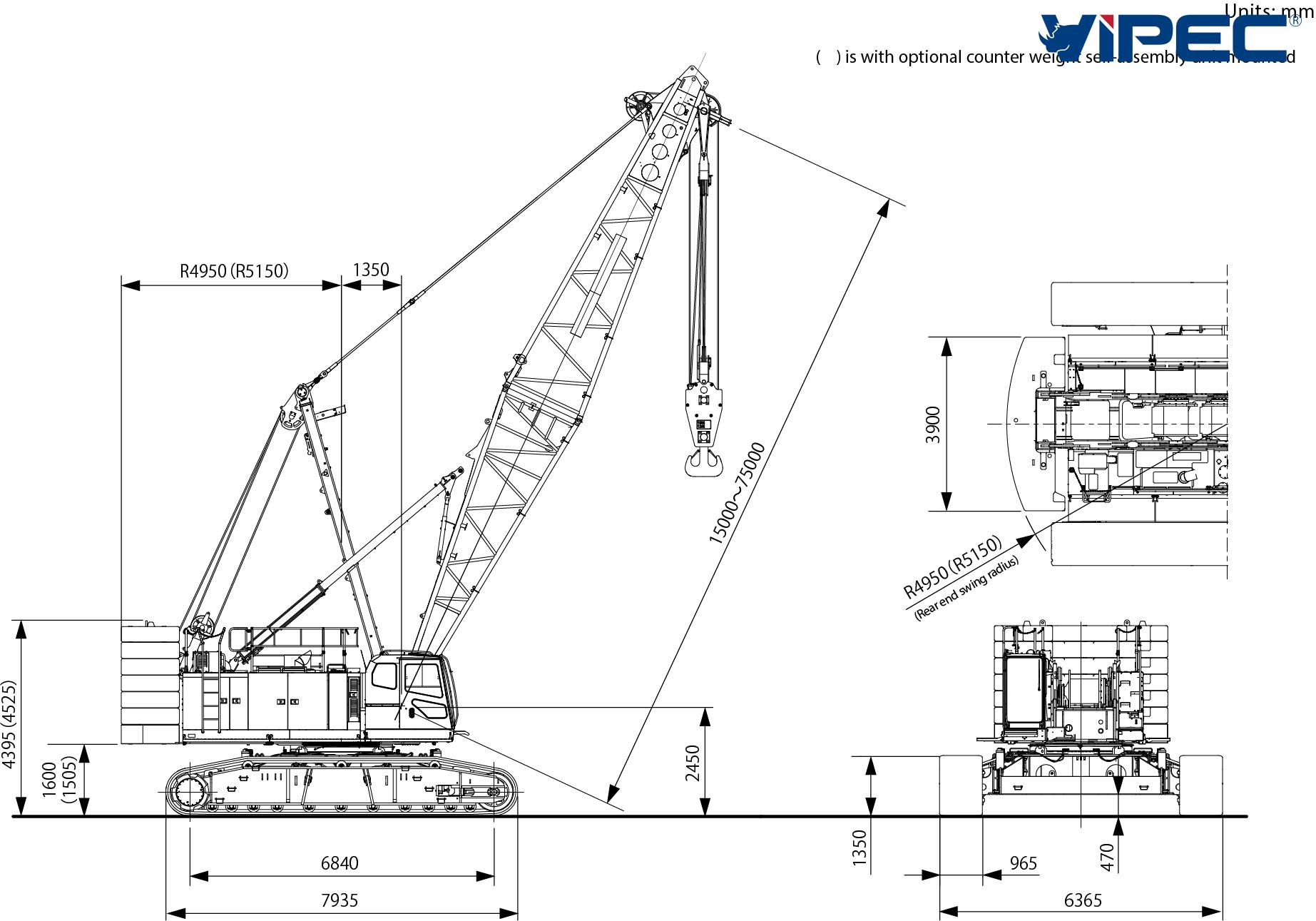 | Sức nâng tối đa x Bán kính | 150 t × 4.5 m |