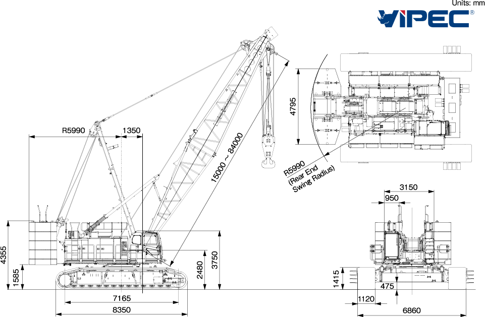 | Chiều dài cần chính (Boom) | 15.0 – 84.0 m |