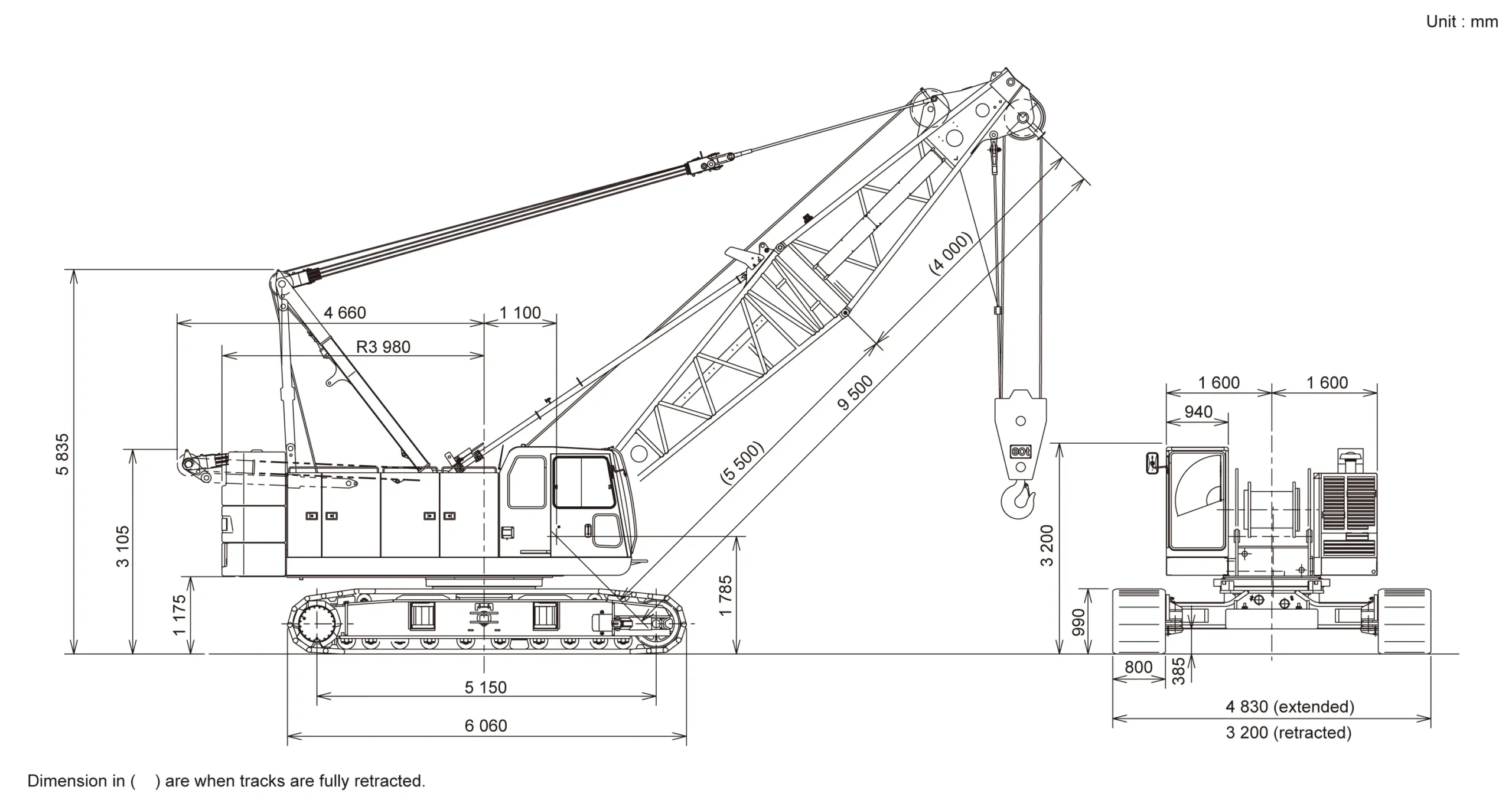 | Tải trọng nâng tối đa × Bán kính | 80 t × 3.4 m |