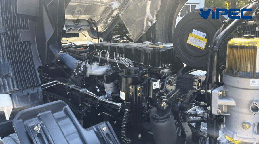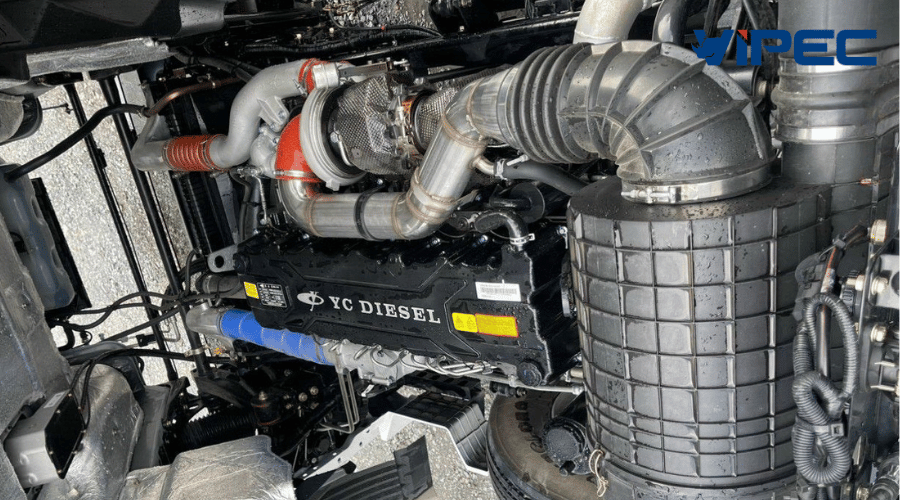 Động cơ YUCHAI YCK11460-50 với dung tích xi lanh lên tới 10.980 (cc) 4 kỳ, 6 xi lanh thẳng hàng, tăng áp, làm mát bằng nước sản sinh công suất tối đa lên tới 460HP cho khả năng kéo theo lên tới 40 tấn.