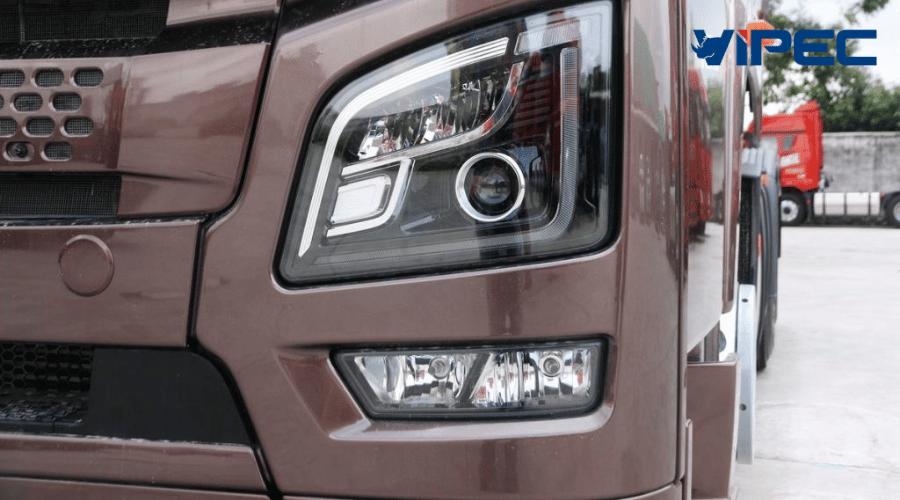Phần đầu xe trang bị cụm đèn pha halogen kết hợp đèn chiếu sáng ban ngày, giúp quan sát tốt hơn trong mọi điều kiện.
