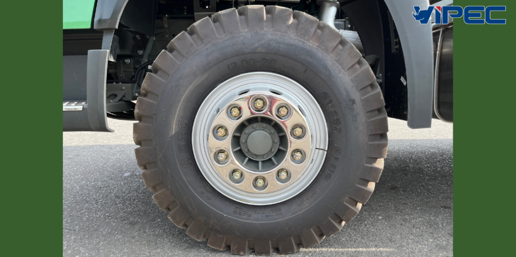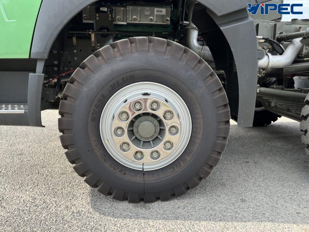 Xe được trang bị lốp tiêu chuẩn có săm hãng tam giác cỡ 12.00-20 (24PR), bố thép, độ ma sát cao.