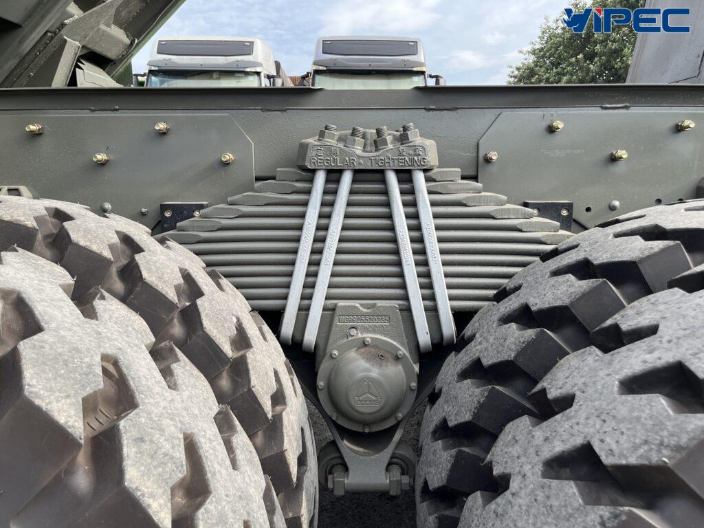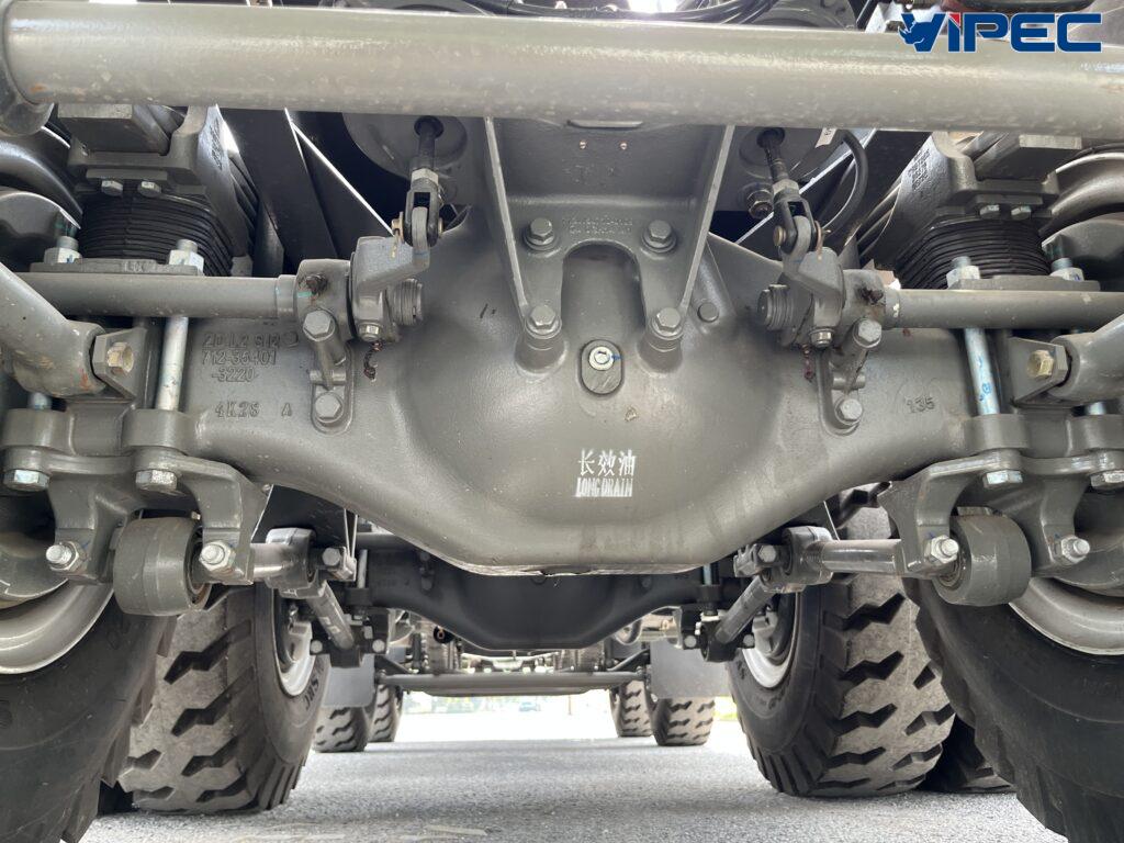 Xe sử dụng hộp số với 12 số tiến 2 số lùi lẫy chuyển số 2 tầng trên cần số rất thuận tiện thao tác số, số có đồng tốc ra vào số nhẹ nhàng ít dùng lực. Cầu xe sử dụng cầu trước là HFVGD95 cầu sau MCP16ZG tải trọng cầu 16 tấn cho khả năng chở tải cũng như quá tải cực kì ưu việt, khả năng vượt địa hình xấu, đường lầy lội hay những công trình những mỏ khai thác cực kì hiệu quả và linh hoạt.