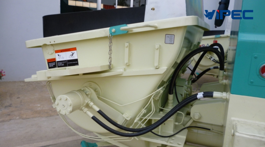 Hệ thống phễu tiếp liệu với thiết kế mới, 2 mô-tơ thủy lực điều khiển cánh khuấy được trang bị ở hai bên, chống kén – nghẹt bê tông