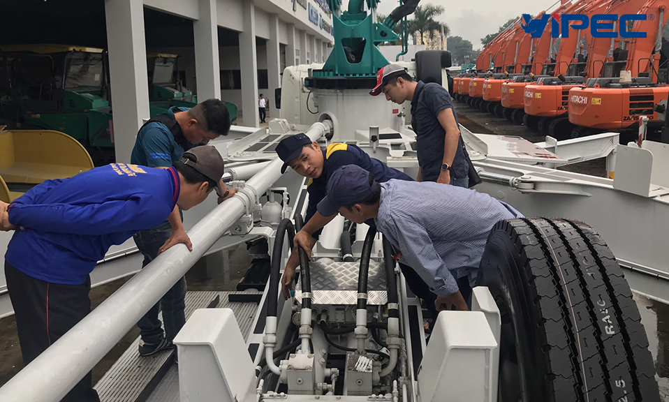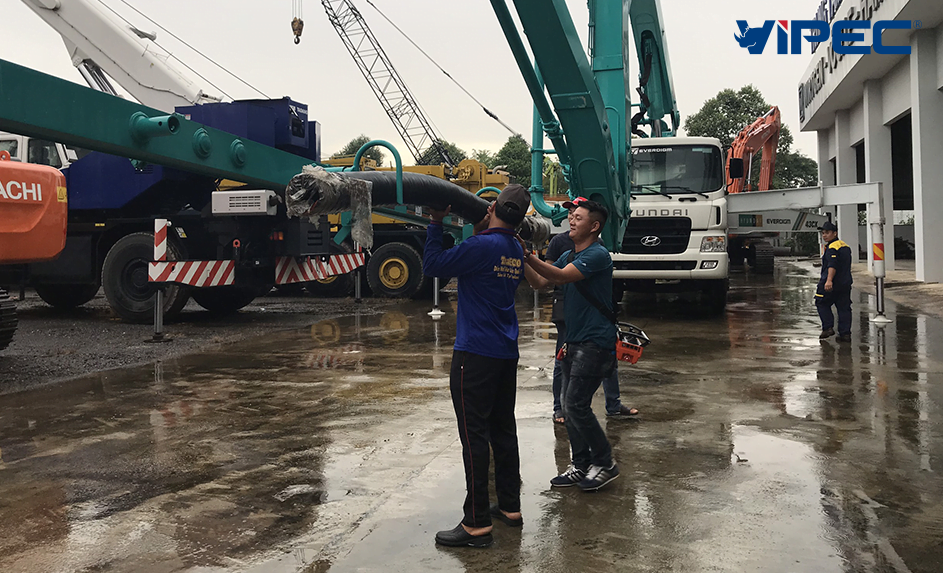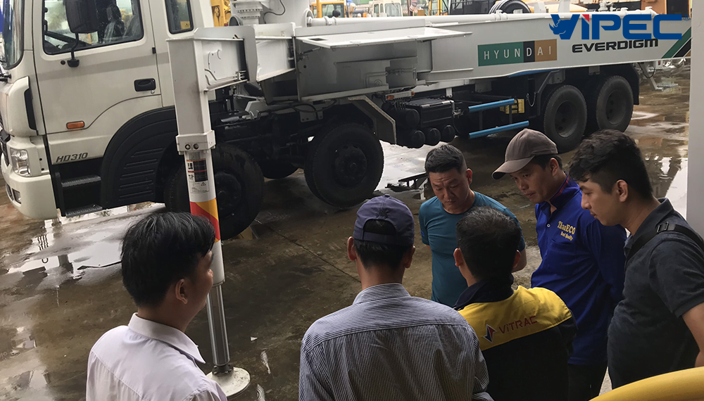 Khoá đào tạo vận hành, bảo dưỡng bơm bê tông là quy trình làm việc của VIPEC trước khi bàn giao xe bơm bê tông tới khách hàng. VIPEC với hơn 20 kinh nghiệm trong ngành phân phối thiết bị xây dựng, cùng đội ngũ kỹ sư, nhân viên giỏi kỹ thuật, hoàn thiện về chuyên môn trong lĩnh vực máy xây dựng, đặc biệt VIPEC là đại lý độc quyền phân phối sản phẩm xe bơm bê tông Hyundai Everdigm chính hãng tại Việt Nam.