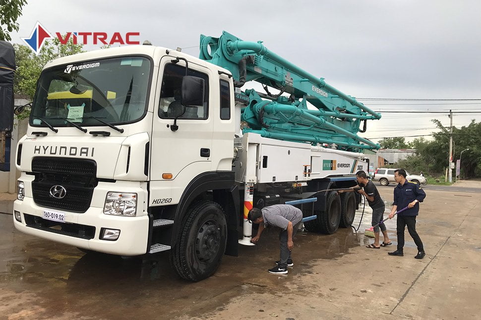 Công ty Cổ phần Tổng Công Ty Vĩnh Phú (VITRAC) tự hào là đơn vị phân phối độc quyền xe bơm bê tông Hyundai Everdigm. Với mục tiêu phát triển thương mại đi đôi với dịch vụ. Kết hợp cùng với đội ngũ kỹ sư, nhân viên giỏi kỹ thuật, hoàn thiện về chuyên môn. Chúng tôi cam kết đem tới cho quý khách hàng những sản phẩm tốt nhất và dịch vụ sau bán hàng hoàn hảo với mong muốn mang lại cho thị trường Việt Nam những trải nghiệm tốt nhất về sản phẩm bơm bê tông.