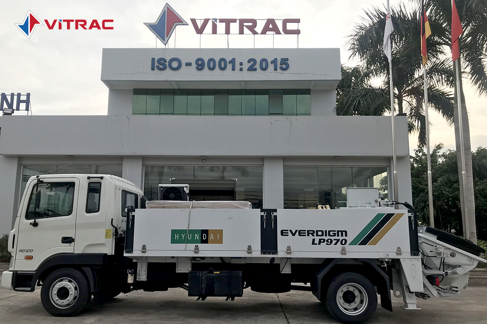 – 01 xe bơm bê tông tự hành Hyundai Everdigm LP970, công suất bơm đạt >100m3/h, áp suất đẩy bê tông là 153 bar