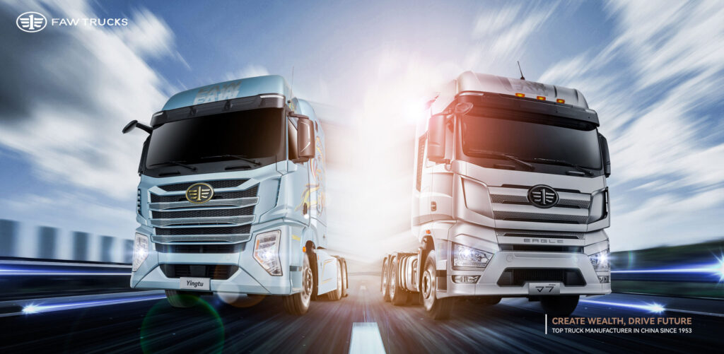 FAW Trucks is a leading truck brand under FAW Group – one of the largest and oldest automobile manufacturers in China, headquartered in Changchun City, Jilin Province. With over 60 years of development, FAW Trucks has produced more than 7 million vehicles, playing a pioneering role in China’s commercial vehicle industry. With a team of nearly 25,000 employees and a production capacity of 310,000 vehicles per year, FAW Trucks has now built a global distribution network, present in over 80 countries and regions through 58 international distributors. The company also owns a modern research & development system, comprising over 5,000 engineers working at R&D centers in 4 countries, focusing on new-generation vehicle technologies such as clean energy, artificial intelligence, 5G connectivity, and smart manufacturing. FAW Trucks is committed to providing high-quality, durable, and high-performance trucks, accompanied by a professional after-sales system. With the philosophy of “Customer-centricity – Innovation as the driving force for development,” FAW aims to become a world-class commercial vehicle brand, delivering sustainable value to partners and customers worldwide.