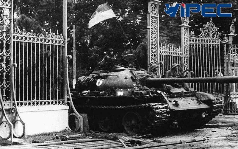 Đúng 10 giờ 45 phút ngày 30/4/1975, xe tăng Quân Giải phóng húc đổ cổng Dinh Độc Lập.